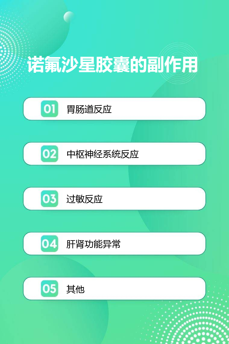 4.肝肾功能异常:少数患者在使用诺氟沙星胶囊后可能会出现肝功能异常,如转氨酶升高,或肾功能异常,如血肌酐、尿素氮升高等。