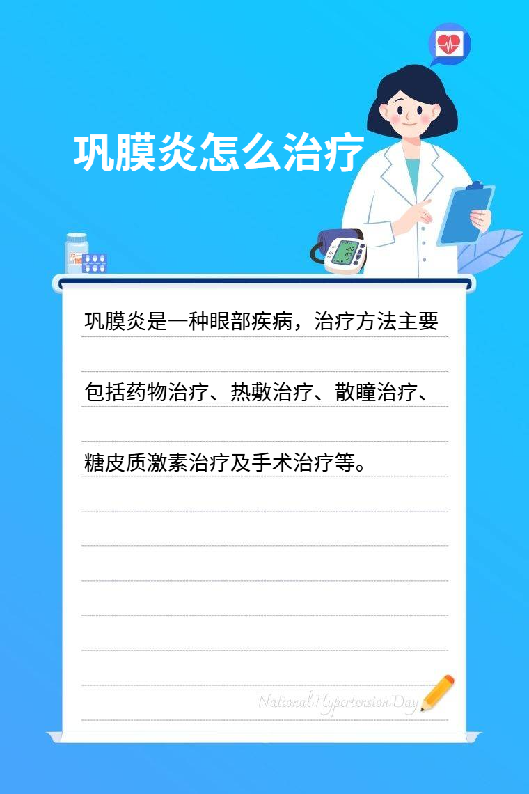 巩膜炎是一种眼部疾病,治疗方法主要包括药物治疗、热敷治疗、散瞳治疗、糖皮质激素治疗及手术治疗等。