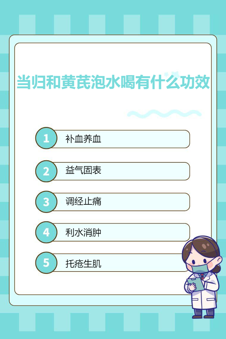 当归和黄芪泡水喝具有补血养血、益气固表、调经止痛、利水消肿、托疮生肌等功效。