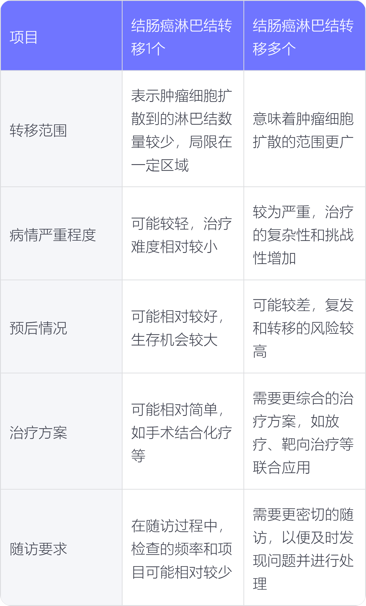 5.随访要求:1个淋巴结转移的患者在随访过程中,检查的频率和项目可能相对较少;多个淋巴结转移的患者需要更密切的随访,以便及时发现问题并进行处理。