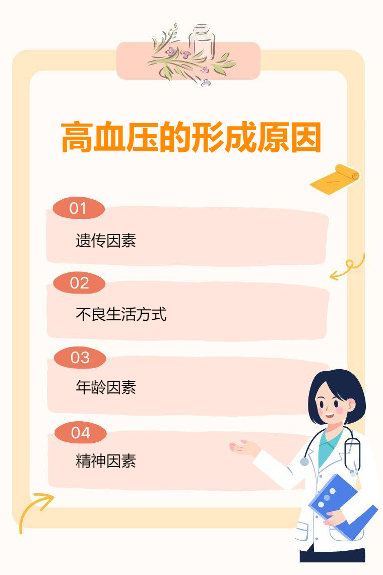 高血压的形成原因较为复杂,主要包括遗传因素、不良生活方式、年龄因素、精神因素等。
