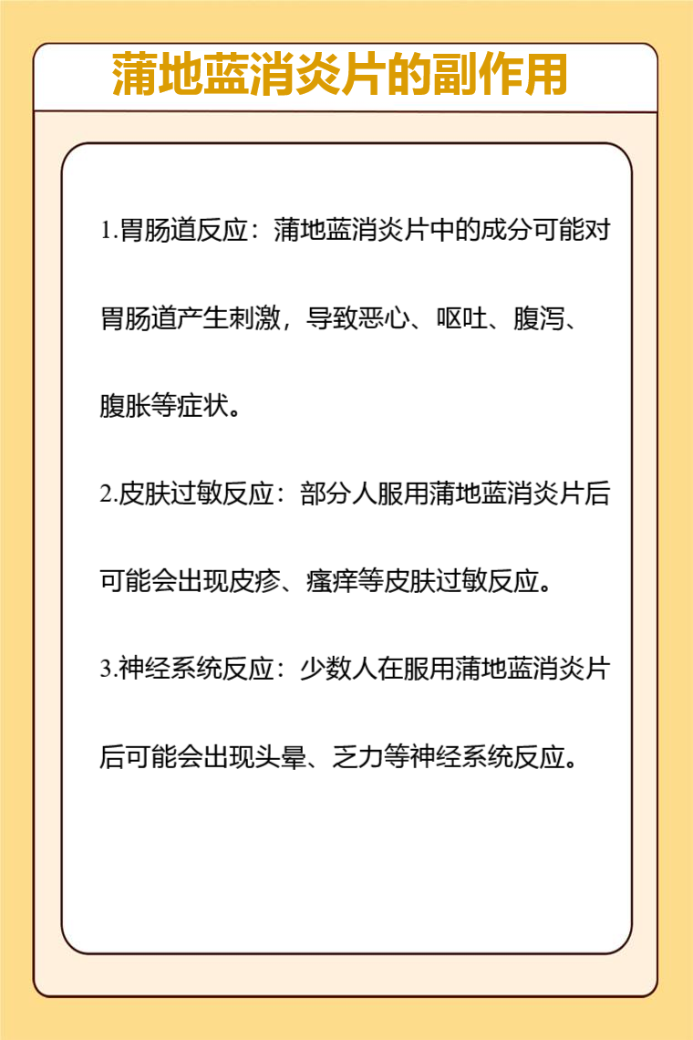 蒲地蓝消炎片是一种常用的中成药,具有清热解毒、抗炎消肿的作用,但其使用也可能会带来一些副作用,如胃肠道反应、皮肤国棉反应、神经系统反应等。