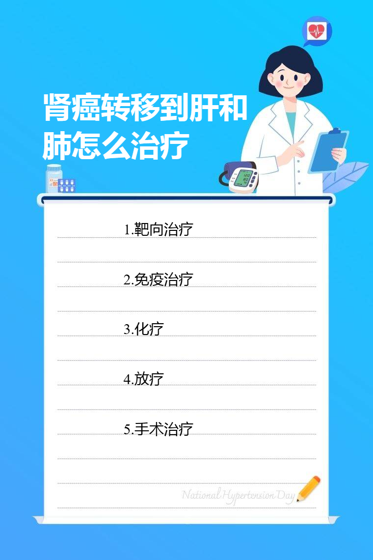肾癌转移到肝和肺,治疗方法主要包括靶向治疗、免疫治疗、化疗、放疗以及手术治疗等。