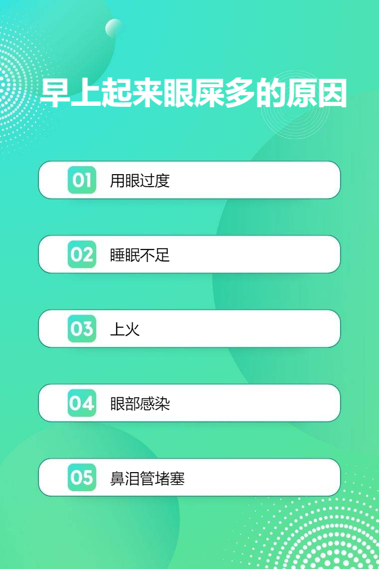 早上起来眼屎多可能是由多种原因引起的,如用眼过度、睡眠不足、上火、眼部感染、鼻泪管堵塞等。
