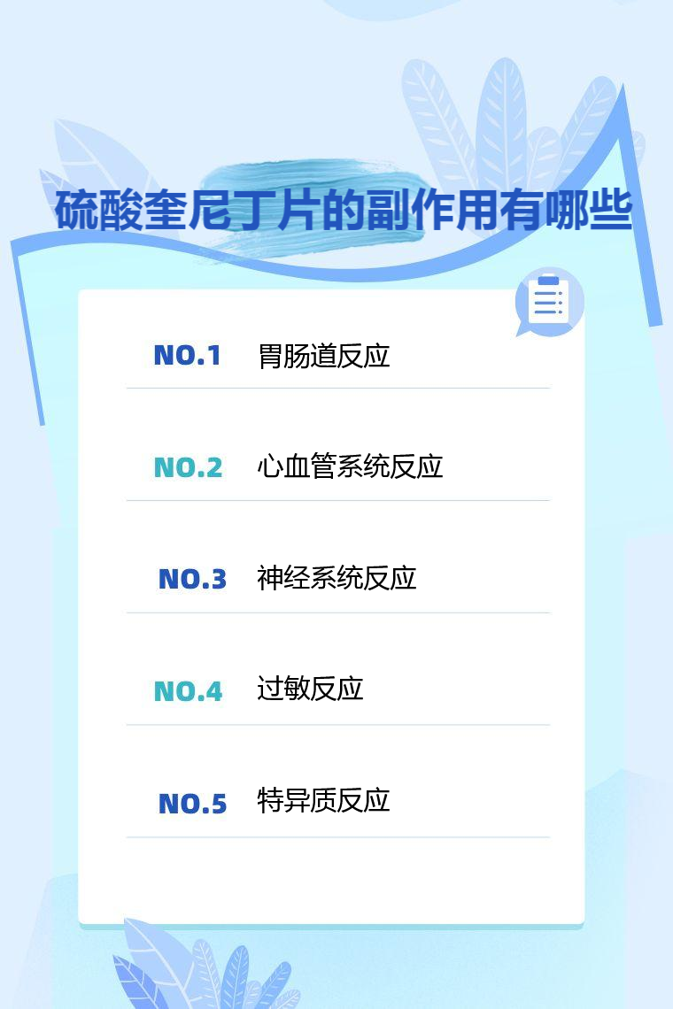 硫酸奎尼丁片可能会引起胃肠道反应、心血管系统反应、神经系统反应、过敏反应及特异质反应等。