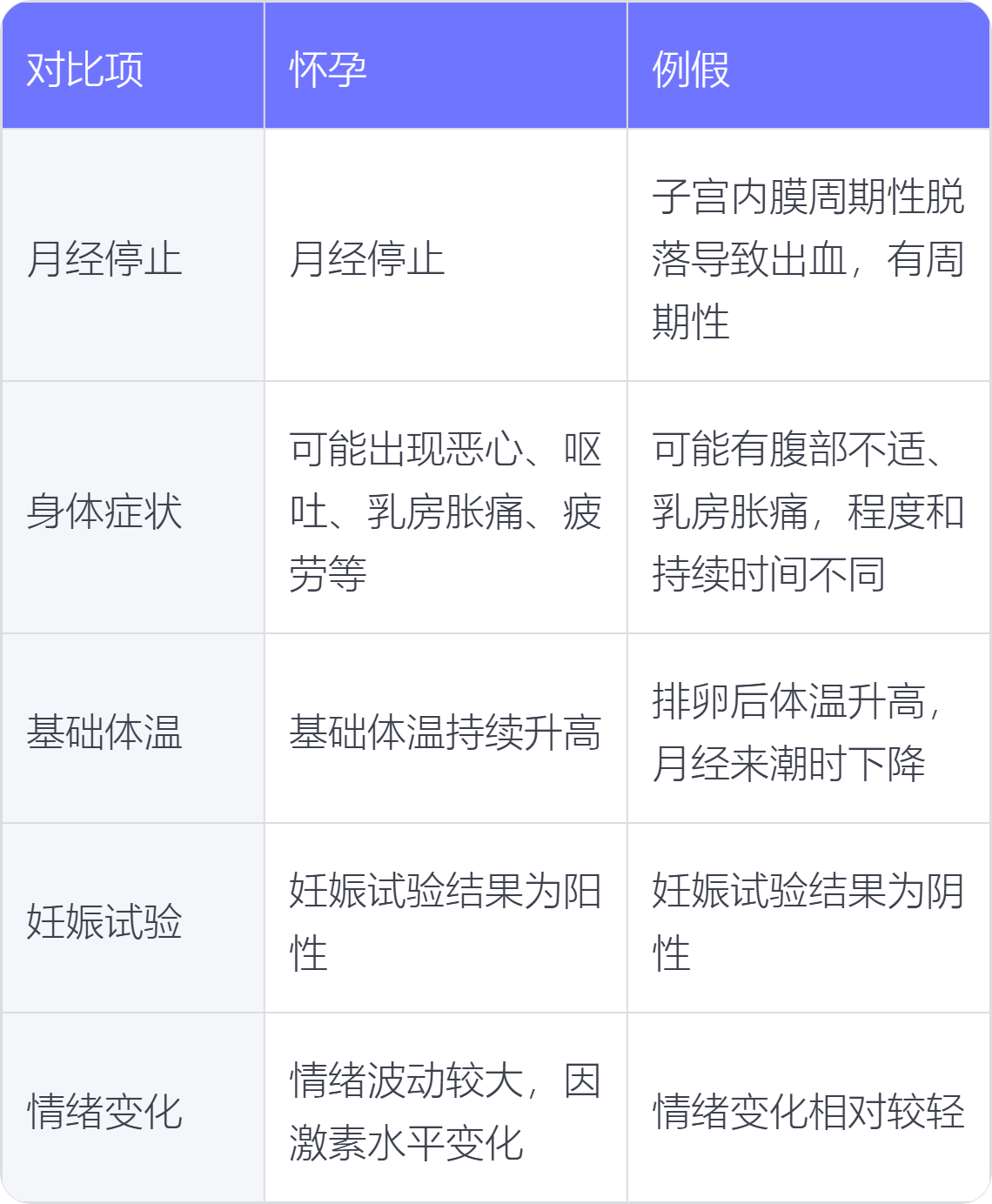 怀孕和例假是女性生理上的两种不同情况,它们在月经停止、身体症状、基础体温、妊娠试验、情绪变化等方面存在区别。