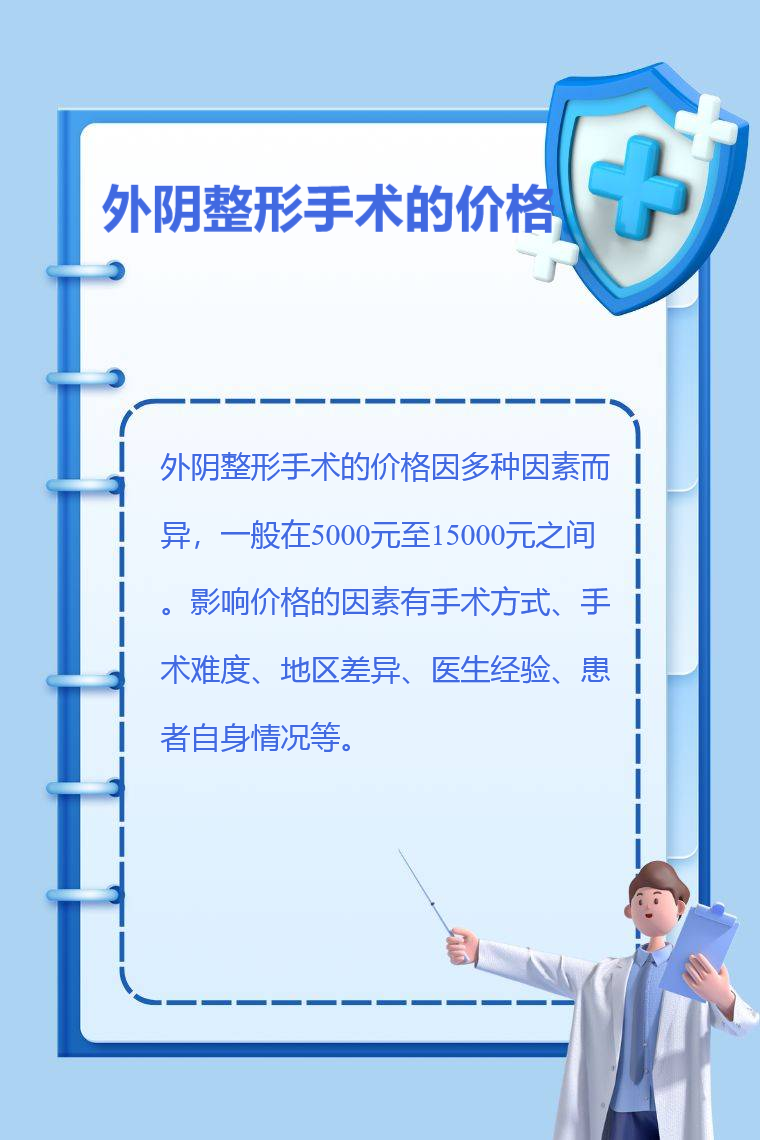 外阴整形手术的价格因多种因素而异,一般在5000元至15000元之间。影响价格的因素有手术方式、手术难度、地区差异、医生经验、患者自身情况等。